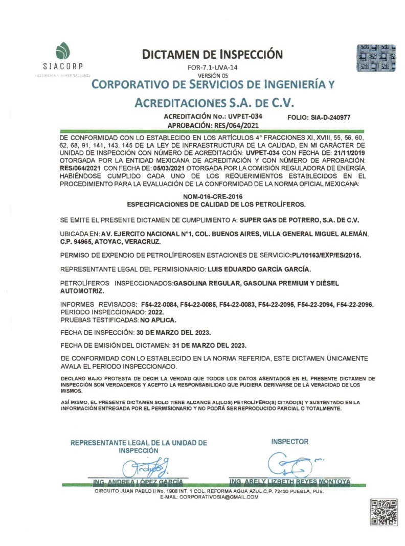 de combustible para así seguir manteniendo la certificación X que nos ha otorgado la empresa Pemex.